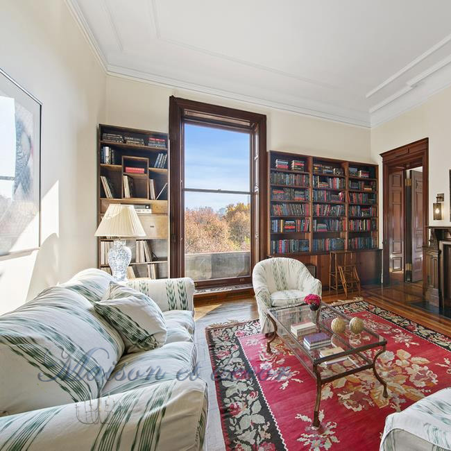 Pour finir sur la bibliothèque, je vous présente la vision de l’agence immobilière… la pièce apparait beaucoup plus grande, et surtout on voit le dernier mur, celui tapissé d’étagères avec la fenêtre au balcon qui donne sur Central Park.